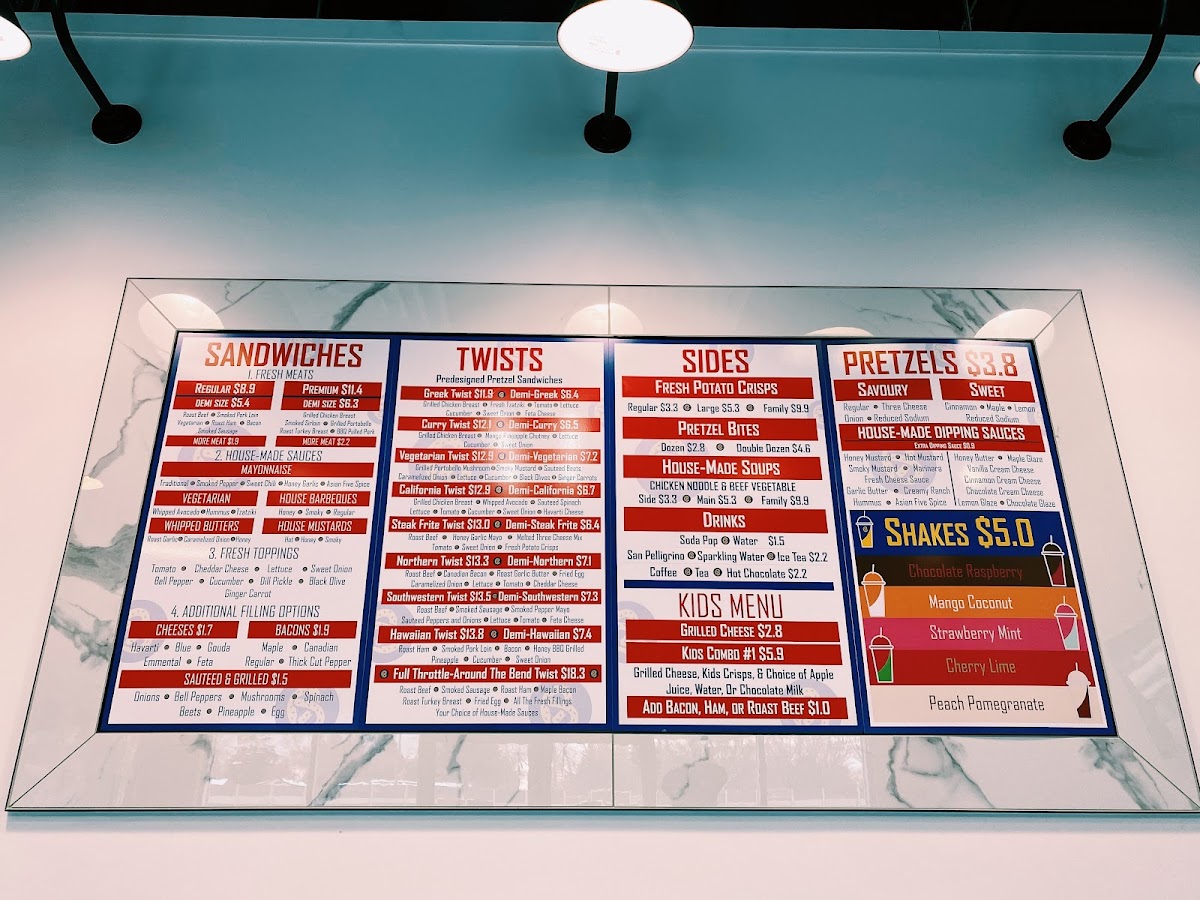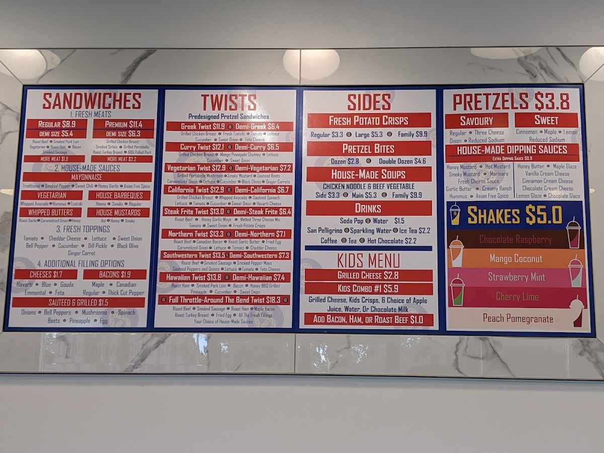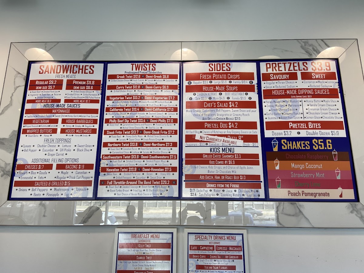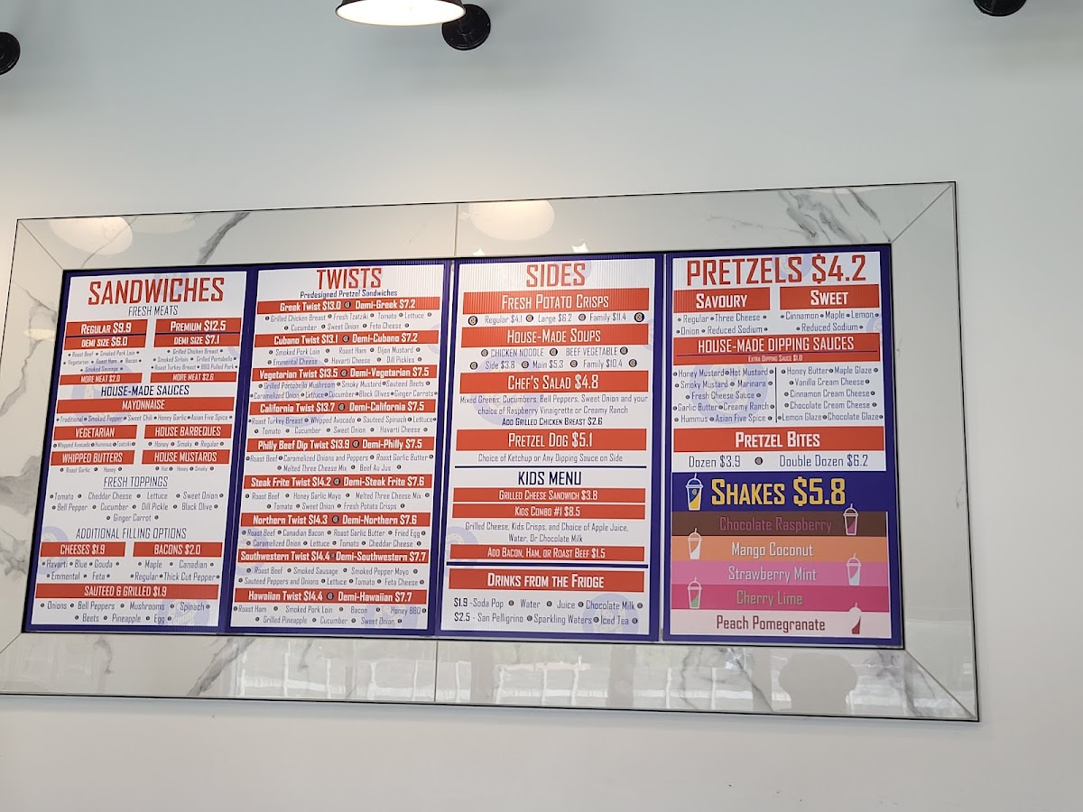 Ordered the Greek Twist, Philly Beef Dip pretzel sandwiches and a sweet pretzel today. We thought that the food was good but the dip with the Philly Beef Dip was extremely salty and the sweet pretzel was a bit crunchy. The chairs still had fingerprints and crumbs from the previous customer but the food and service made up for that. The prices are reasonable for a small restaurant such as this one and the restaurant has a decent location. Will have to come back to try some of their other pretzel sandwiches!